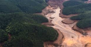 Rio Doce recebeu milhões de metros cúbicos de lama de minério provenientes de barragem da mineradora Samarco que se rompeu contaminando todo o leito do Rio. Este foi o maior desastre ambiental do Brasil.